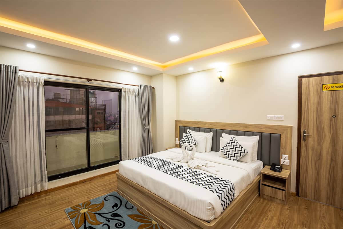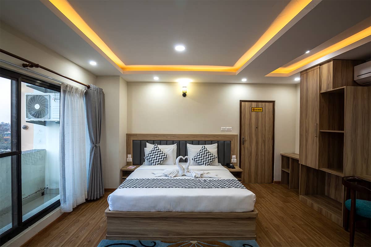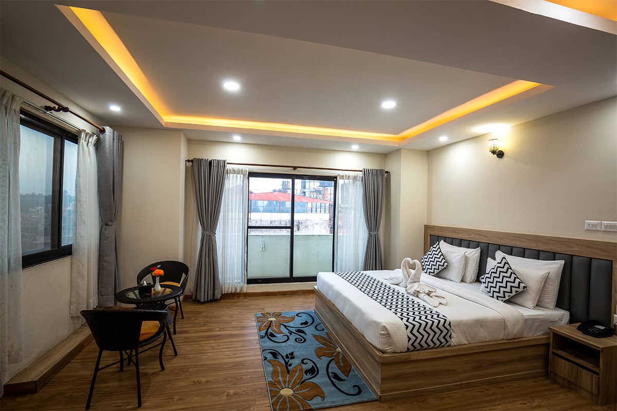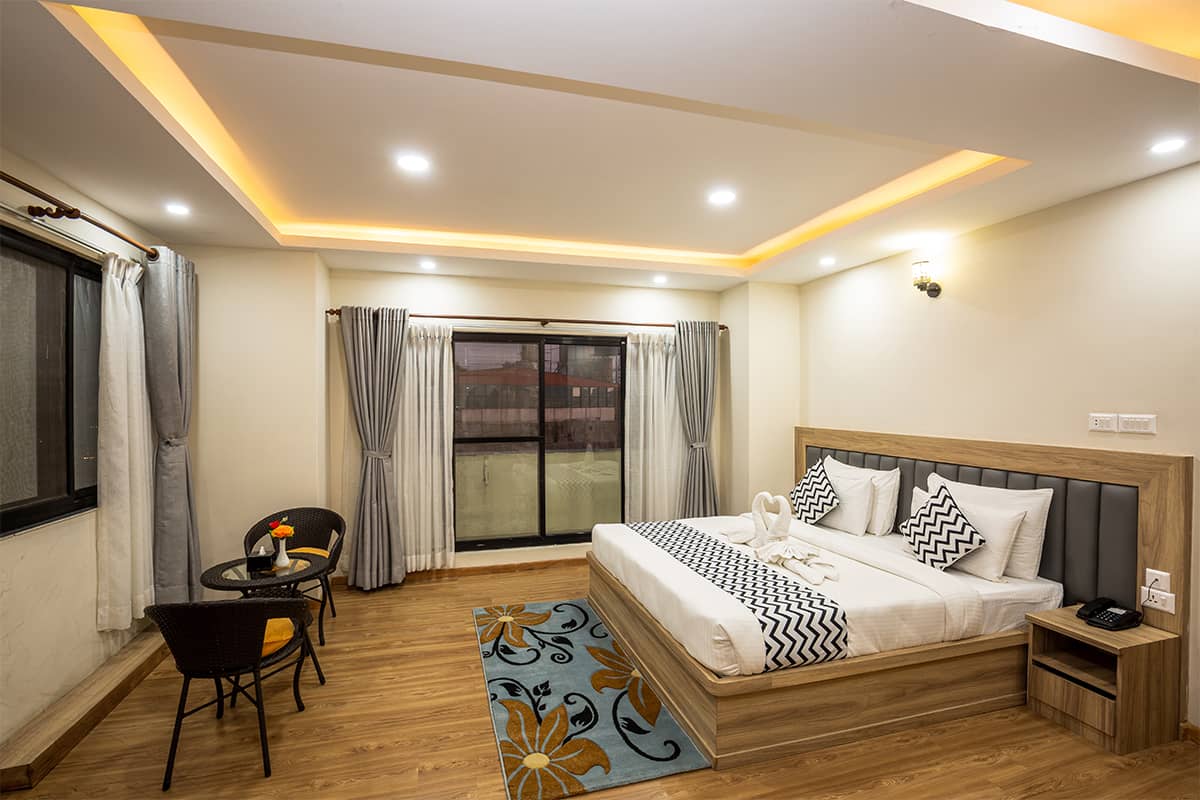 Our Superior Room with Balcony offer a comfortable double bed with an attached bathroom, Balcony and all amenities essential for your comfortable stay. Whether you're visiting for business, travel or just leisure purpose our Superior Room with Balcony are a perfect choice. These rooms are designed with total comfort in mind for a truly relaxing and quality sleep experience